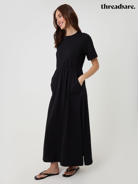 ブラック - Threadbare クルーネックジャージーミディワンピース・パッチポケット付き