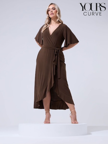 ブラウン - Yours Curve London フリルヘム カシュクールワンピース