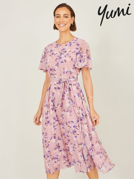 Yumi ブロッサムプリントラップミディ丈ディップヘムドレス