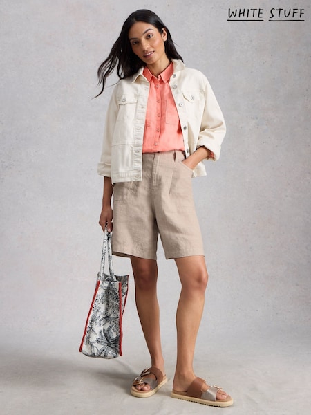 (155)A holiday must-have, linen shorts exude unparalleled comfort. Whether you're taking a walk in the countryside or shopping in the city, our linen shorts are available in a choice of fits and are a must-have on holiday. With a selection of printed, paperbag and culotte styles, make an impression with comfy sandals and your favourite tee.