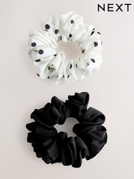 ブラック /ホワイト 水玉 - オーバーサイズ シュシュ 2 個組