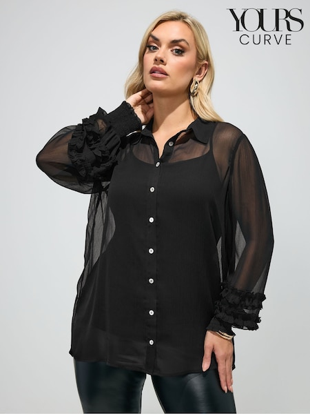 ブラック - Yours Curve London 大きいサイズ・フリル シャーリング カフシャツ
