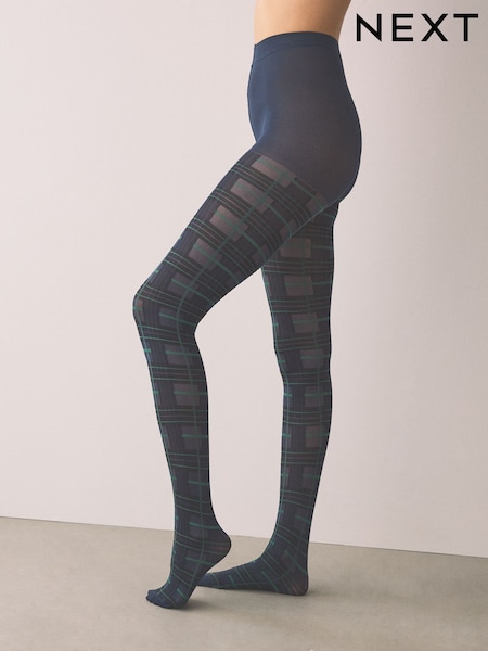 Black/Green/Navy - Tartan Check Pattern 40 Denier Tights