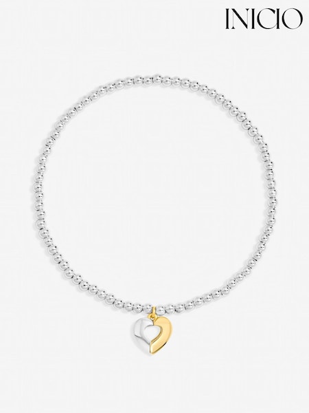 Simply Silver ギフトポーチ付き ツートーン ハート ストレッチ ブレスレット