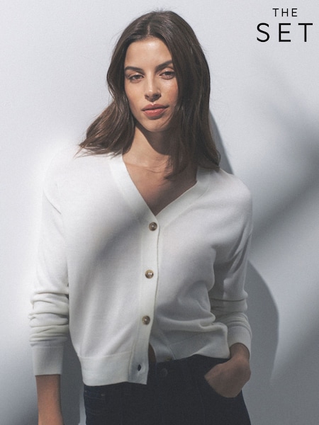 クリーム / ブラック - The Set ニット ケーブルカーディガン 2枚組