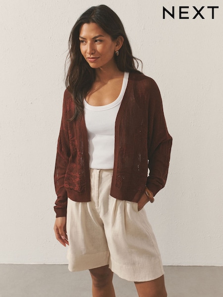 チョコレートブラウン - パームツリーパターン カーディガン
