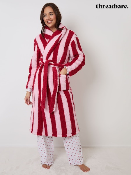 レッド - Threadbare ストライプ ボア ドレッシングガウン