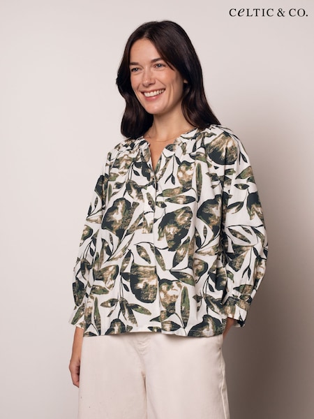 Celtic & Co. コットンブレンド Vネックボタンスルーブラウス