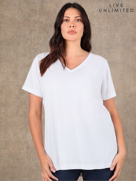 ホワイト - Live Unlimited コットン 100% スラブ Vネック Tシャツ