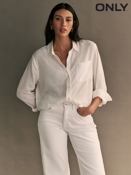 ONLY 長袖 リネンブレンド カジュアルシャツ