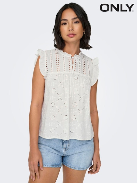 ONLY イギリス刺繍 Oネック ノースリーブ ブラウス