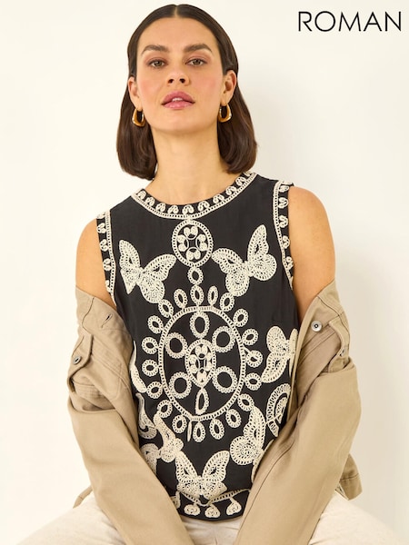 Roman バタフライ 刺繍入り タンクトップ