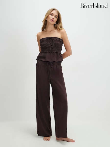 River Island Ruched Bandeau & Wide Leg Trousers Set