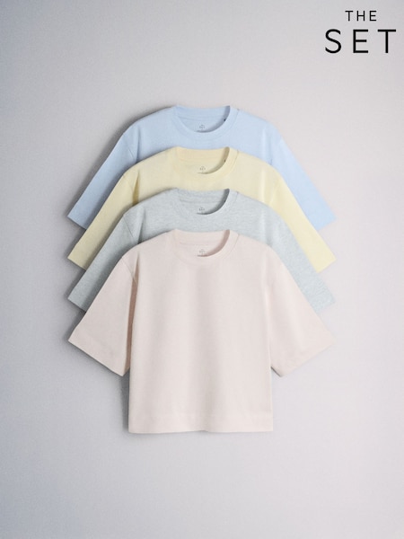 パステルブルー/グリーン/イエロー/ピンク - The Set ヘビーウェイト 半袖 Tシャツ 4 枚組