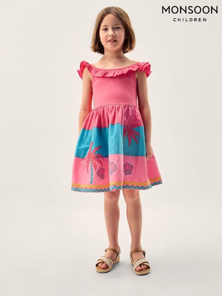 Monsoon Shell Embroidered Colourblock Dress
