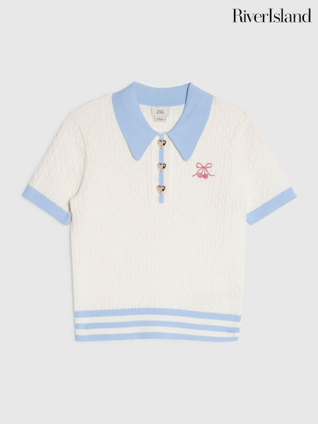 ホワイト - コットンストレッチ かわいい襟付きスクールジャージー トップ(3~14 歳)