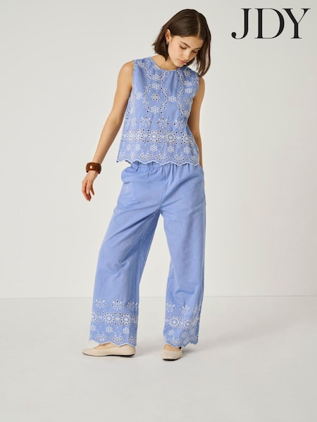 JDY コットン 100% 刺繍ディテール ハイウエスト パンツ