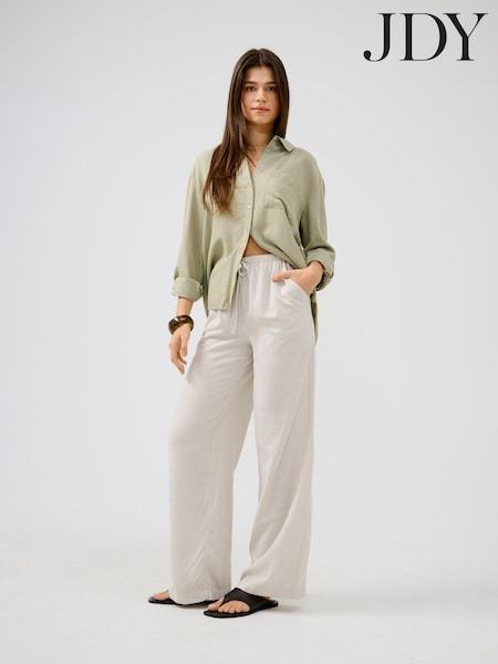 クリーム - JDY プルオンリネン混ワイドレッグパンツ