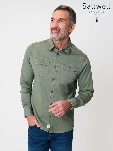 グリーン - Saltwell リネンコットン混 長袖シャツ