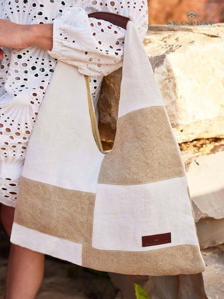ナチュラルベージュ/ホワイト - Seaspray Calala パッチワーク ビーチバッグ & 財布 セット
