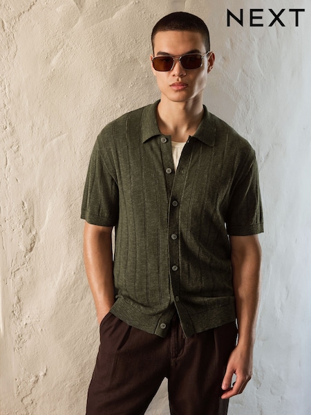 グリーン - レギュラーフィット リネンブレンド ポワンテル ニットシャツ