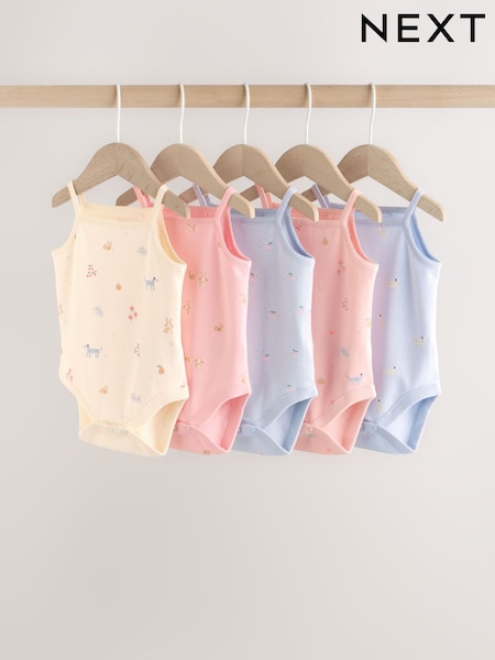 Blue 5 Pack Baby Bear Vest Bodysuits