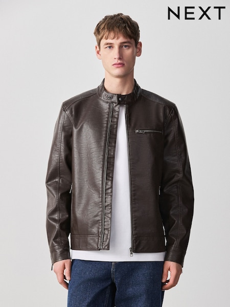 Brown Faux Leather Racer Jacket