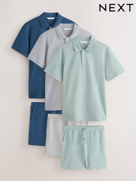 Bue/Green/Grey Polo and Shorts Co-ord Set