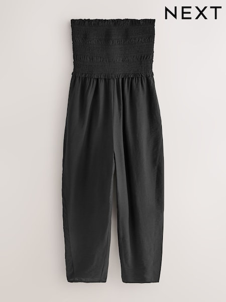 Black Bandeau Shirred Body Barrel Leg Jumpsuit