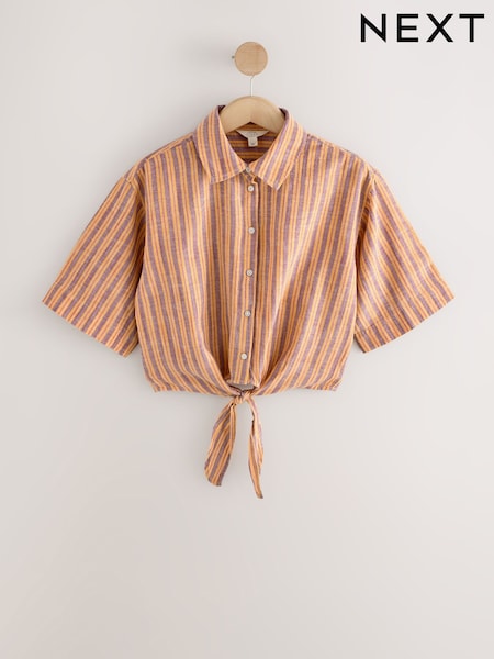 Orange/Burgundy Stripe Tie-Front Short Sleeve Shirt