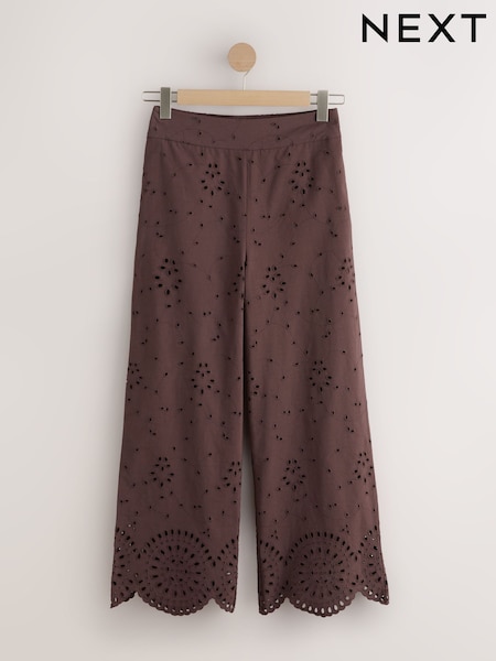 Chocolate Brown Broderie Crop Wide Leg Trousers