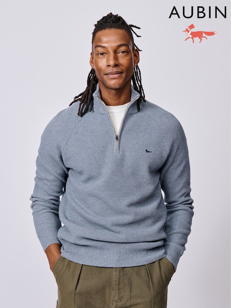Navy Blue Rib Texture Zip Through Cardigan with Wool