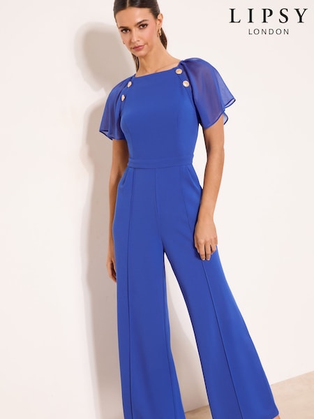 Lipsy Blue Chiffon Flutter Sleeve Miltary Button Jumpsuit