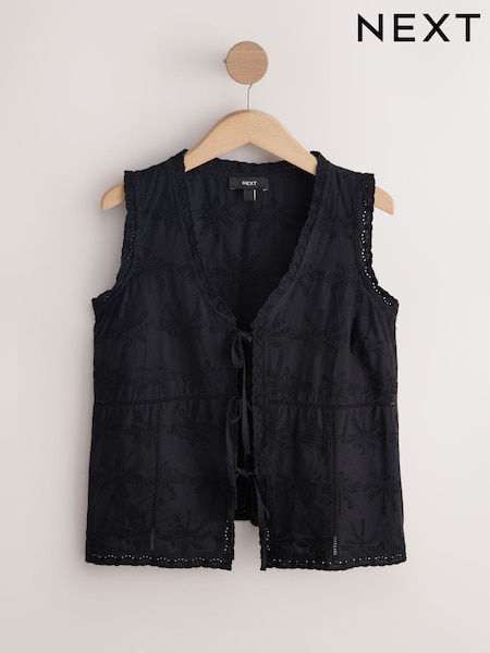 ខ្មៅ - Embroidered Palm Tree Sleeveless Top