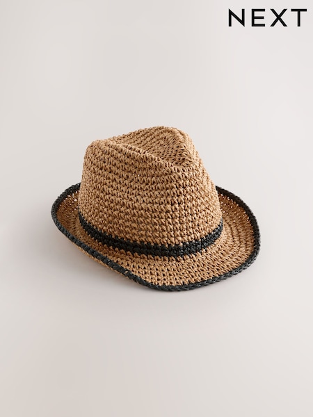 ពណ៌ត្នោតសូកូឡា/ធម្មជាតិ - មួកចំបើងឆ្នូតៗ