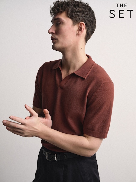 The Set 3 Pack Fine Gauge Cotton Blend Trophy Neck Short Sleeve Jumpers Brown/Pink