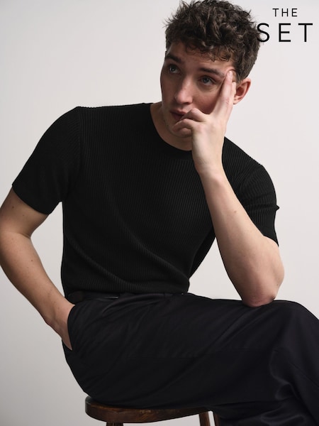 The Set 2 Pack Rib Knitted Short Sleeve Jumpers Black/Green