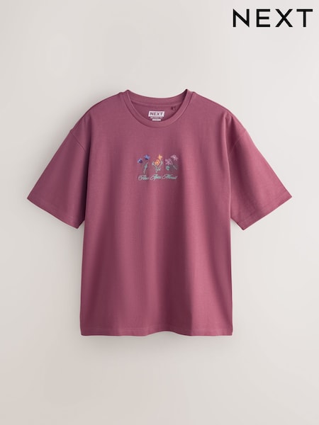 Pink Floral Relaxed Fit Graphic Print Heavy Weight T-Shirt