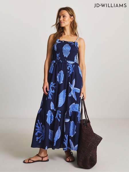 JD Williams Blue Shirred Midi Beach Dress