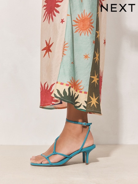 Teal Blue Forever Comfort Leather Strappy Heeled Sandals