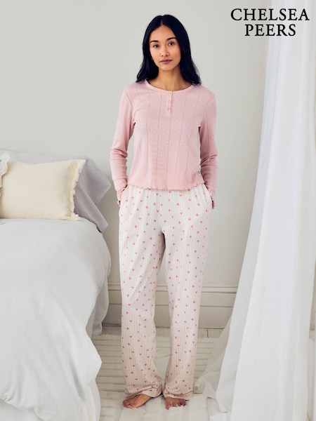 Chelsea Peers Pink Pointelle Suit Stripe Long Pyjamas Set