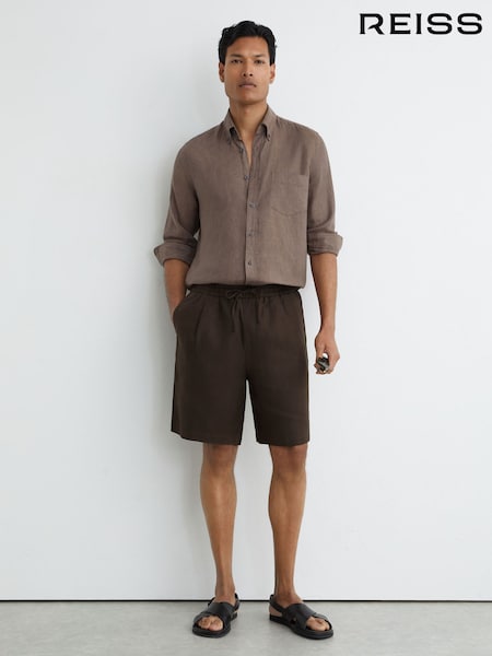 초콜릿 브라운 - Reiss Barges 리넨 드로스트링 스커트
