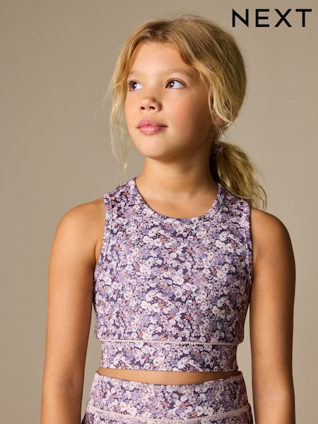 라일락 퍼플 플로럴 - 스포츠 크롭 탑(5-16세)