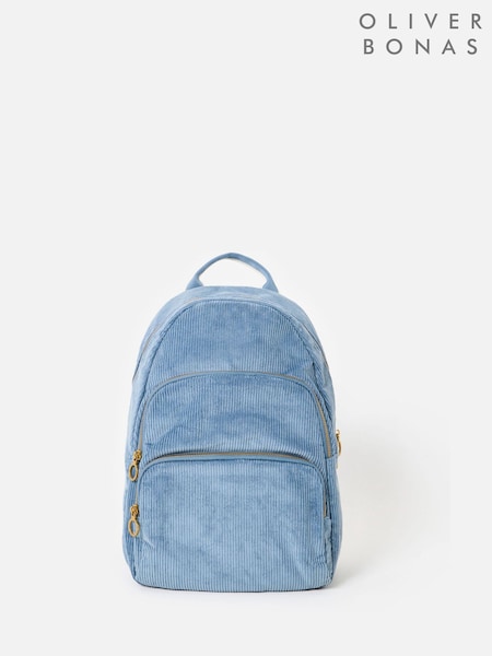 올리버 보나스 하퍼 라이트 블루 코듀로이 트리플 지퍼 백팩
