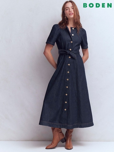내추럴 - Sosandar 포퍼 프론트 데님 드레스