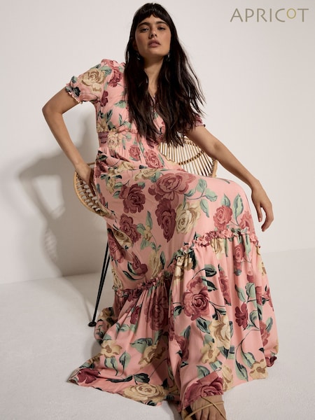 Apricot Chloe 플로럴 랩 맥시 드레스