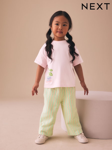 Pink Plants Character - Short Sleeve Top and Wide Trousers Set (3mths-7yrs)