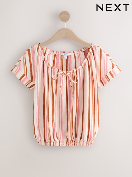 مقلم ألوان متعددة - Short Sleeve Bubblehem Scoop Neck T-Shirt