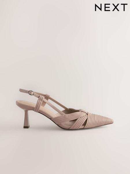 بيج - Forever Comfort® Textured Point Toe Slingabck Heels