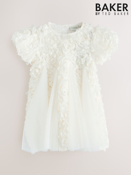Baker by Ted Baker Cream 3D Textured Floral Mesh Godet Dress